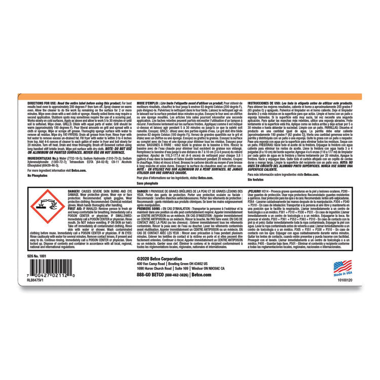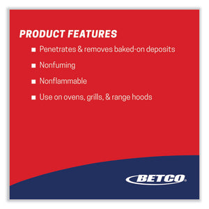 More effective than foaming products, this formulation quickly penetrates and removes stubborn baked-on carbon and soil. Most oven cleaners are designed to work by liquifying baked-on deposits so they can be rinsed or wiped away. Unfortunately, this usually requires several applications. This cleaner was designed to penetrate the deposits and actually break the chemical bond, releasing the baked-on deposits from the oven surface. The result is fast and easy removal of stubborn baked-on food soils. This nonfuming product works fast and leaves a fresh fragrance behind.
