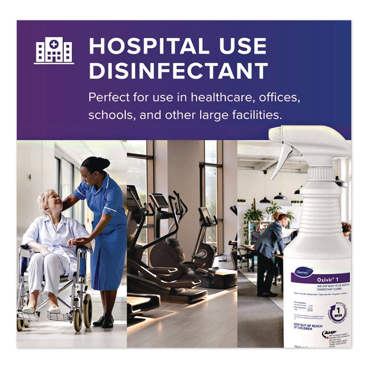 Next generation, ready-to-use disinfectant cleaner, based on proprietary hydrogen peroxide (AHP) technology, delivers fast, effective virucide, bactericide, tuberculocide, fungicide and non-food contact sanitizer performance. Kills MRSA and Norovirus. Disinfects in one minute or less, making it the shortest contact time in the Diversey portfolio of disinfectants and disinfecting wipes: 30 seconds as a virucide (one minute for canine parvovirus); one minute as a bactericide, tuberculocide or fungicide; 10 seconds as a non-food-contact sanitizer; and 30 seconds as a soft-surface sanitizer. Colorless disinfectant features a nonintrusive, characteristic scent.