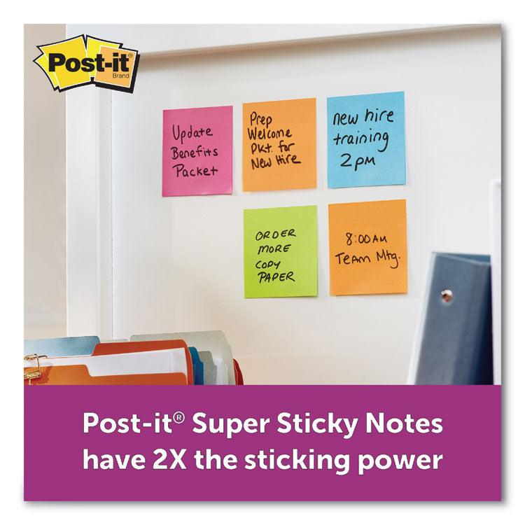 Experience the power of 2X stickiness and get the creative juices flowing with the bright, playfully dynamic colors of the Energy Boost Collection. Super Sticky Notes stick to practically everything, everywhere, and these vibrant, spirited colors can brighten your mood and your messages! Revolutionary technology ensures your notes will stick securely to most surfaces yet remove cleanly. Versatile and essential, they're the perfect solution for lists, reminders, color-coding, labeling, brainstorming, storyboarding and even mural art. As they adhere firmly to walls, windows, doors, worksurfaces, mirrors and more, you can stick and restick them wherever they're most likely to be noticed. To enhance your note-taking experience, download the free Post-it® App to your smartphone or tablet and instantly capture, save and share your important notes.