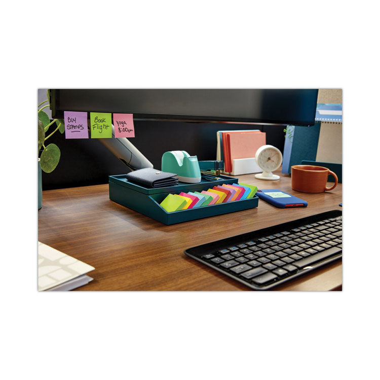 Experience the power of 2X stickiness and add joy to your day with the celebrated rainbow hues of the Playful Primaries collection. Super Sticky Notes stick to practically everything, everywhere! Revolutionary technology ensures your notes will stick securely to most surfaces yet remove cleanly! Versatile and essential, they're the perfect solution for lists, reminders, color-coding, labeling, brainstorming, storyboarding and even mural art. As they adhere firmly to walls, windows, doors, worksurfaces, mirrors and more, you can stick and restick them wherever they're most likely to be noticed. To enhance your note-taking experience, download the free Post-it® App to your smartphone or tablet and instantly capture, save and share your important notes.