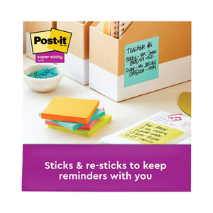 Post-it® Super Sticky Notes have 2X the sticking power to help you organize and keep on top of any project. Colors are from our Supernova Neons collection. Ideas are out of this world with the electric colors of the Supernova Neon collection. Sort your project by color and subject, and accomplish more. Post-it® Super Sticky Notes are recyclable and stick again and again and allow to move your notes with you throughout your day.