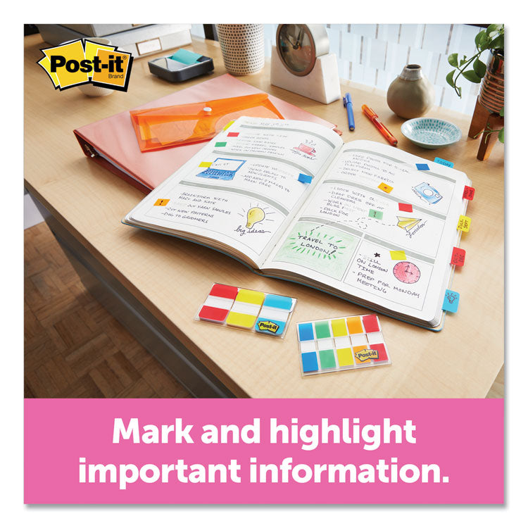 Find it fast with Post-it® Flags in bright eye-catching colors that get noticed. They make it simple to mark or highlight important information in textbooks, calendars, notebooks, planners and more. They stick securely, remove cleanly and come in a wide variety of colors. Draw attention to critical items or use them to index, file or color code your work, either at home, work or in the classroom. Try with Post-it® Notes for the ultimate study duo.