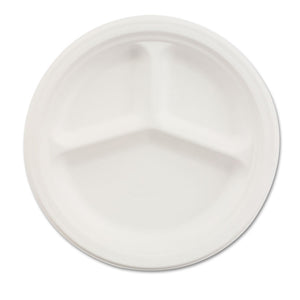 Paper Dinnerware, 3-Compartment Plate, 9.25" Dia, White, 500/carton