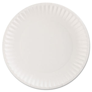 Affordable white uncoated paper plates. Lightweight design allows plates to be used for multiple purposes.