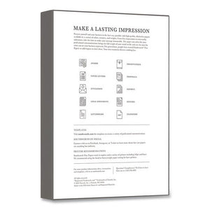 Create professional documents with this Southworth Parchment Specialty Paper. The parchment finish produces a sophisticated appearance, while the 24-pound material delivers a high-quality feel. This 1" parchment specialty paper offer is acid-free and lignin-free, so ink won't life off printed pages, allowing for documents to be archived.