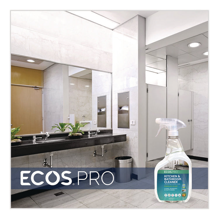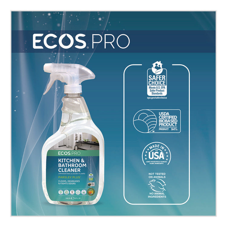 The ECOS PRO Parsley Plus all-purpose kitchen and bathroom cleaner and degreaser washes and fights odors with the natural power of parsley. This pH-balanced formula removes dirt, grease, grime, and scum from water-safe surfaces. Cleans and shines all areas of the kitchen and bathroom; works exceptionally well on granite and marble, leaving no haze or residue even on high-shine stone surfaces. Made using sustainable, plant-powered ingredients. Made without dyes; gray water and septic safe. Features a pleasant parsley scent. Not tested on animals. Manufactured in a facility that is LEED Zero Carbon, LEED Zero Waste, and LEED Zero Energy Certified.