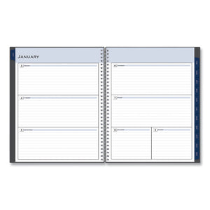 Add sophisticated appeal to your planning tasks with the Passages sleek and professional weekly/monthly planner. Flexible weekly spreads feature an open-format design with ample space for daily appointments, tasks and takeaways. For longer-range planning, the tabbed monthly views provide all the basics plus a separate ruled space for important notations. Six past-year, untabbed monthly spreads help you transition into the new year, while additional pages for yearly goals, contacts, important dates and more help you stay on track. Durable, twin-wire binding allows the book to lie flat when open, and thick, high-quality paper stock minimizes the potential for ink bleed through.