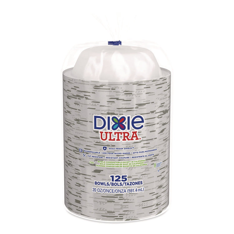 Moisture resistance, grease resistance and dry and wet rigidity make Dixie Ultra® Heavy-Weight Paper Bowls the right choice for the heaviest, messiest foods you serve. The unique structure and multi-layer coatings give these disposable paper bowls their strength, while the Soak-Proof Shield helps keep moisture and grease from leaking through. The Pathways® design matches other Dixie Ultra® plates, platters, bowls and cups to create an attractive, coordinated look. These heavy-duty paper bowls are ideal for foodservice and special events, and because they're microwaveable and cut-resistant, these small paper bowls come in handy in kitchens and breakrooms.