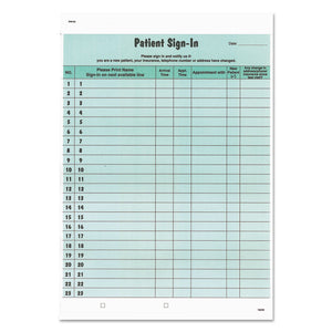 Patient Sign-In Label Forms, Two-Part Carbon, 8.5 x 11.63, Green Sheets, 125 Forms Total