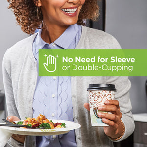Dixie® PerfecTouch® Insulated Paper Hot Coffee Cups are designed to help extend consumption time by keeping hot drinks warmer longer, helping improve overall product quality. The outer lining of these hot paper cups helps keep hands comfortable to the touch, eliminating the need for double-cupping or cup sleeves, which can help reduce waste and minimize overall cost. Insulated hot paper cups keep drinks hot and fingers cool. More hygienic because they are one-time use compared to permanent ware cups. Dual-purpose paper cups help with storage constraints and simplify ordering.