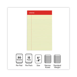 Perforated Ruled Writing Pads, Narrow Rule, Red Headband, 50 Canary-Yellow 5 X 8 Sheets, Dozen