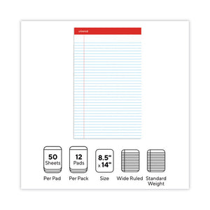 Perforated Ruled Writing Pads, Wide/legal Rule, Red Headband, 50 White 8.5 X 14 Sheets, Dozen