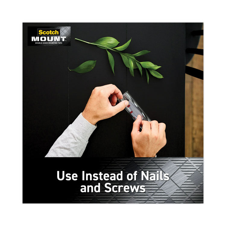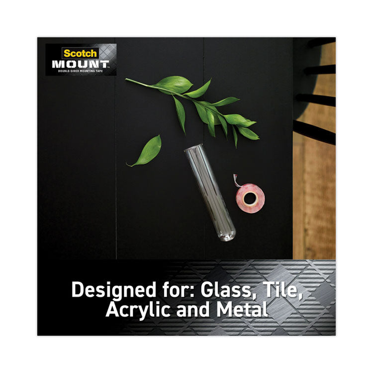 For items that need an undetectable mounting means, reach for the stealth adhering power of Scotch™ Clear Mounting Tape. Virtually clear, this double-sided permanent tape is perfect for mounting glass, tiles and artwork. Its strong bond holds up to 15 pounds, without the hassle of nails or a hammer. So whether you're mounting acrylic cosmetic organizers or a translucent picture frame, affix it confidently with Scotch™ Clear Mounting Tape.