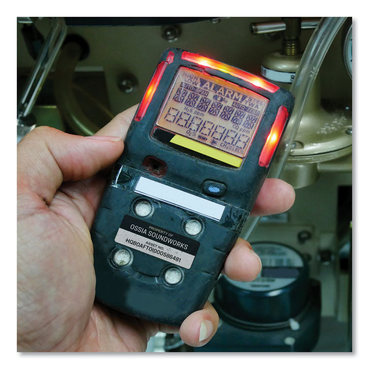 - Labels feature a strong adhesive and the durable metallic material is chemical resistant, waterproof and abrasion resistant.