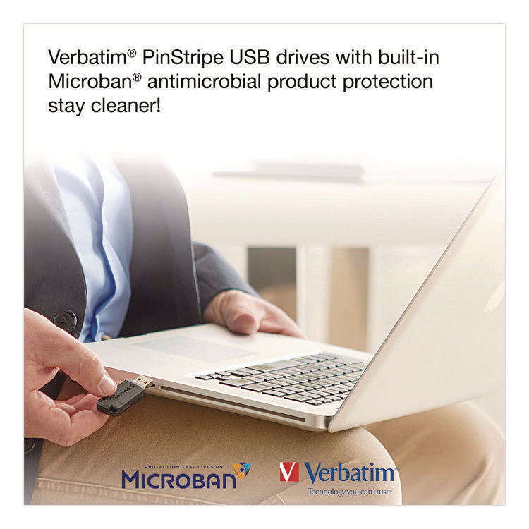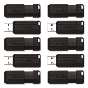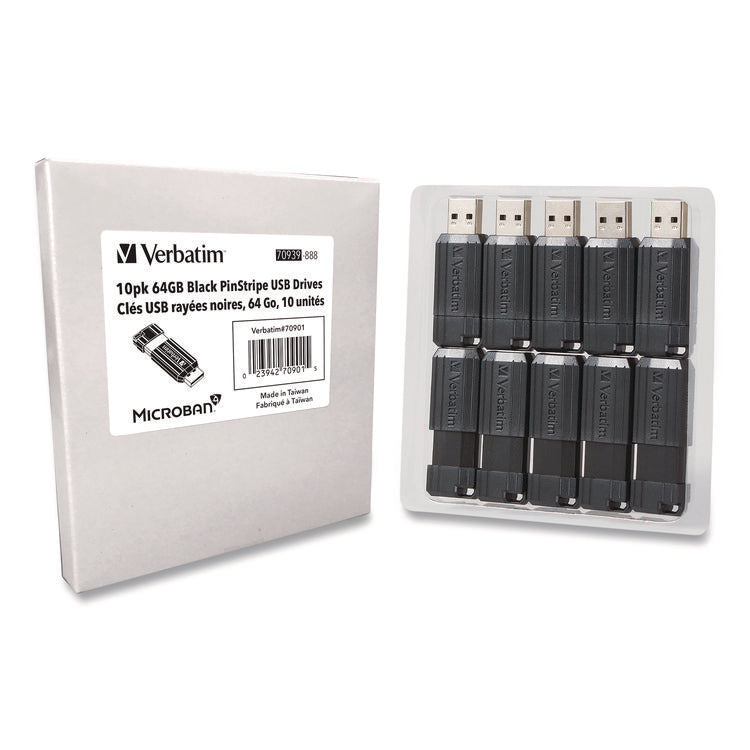 Pinstripe USB 2.0 Flash Drive, 64 GB, Black, 10/Pack