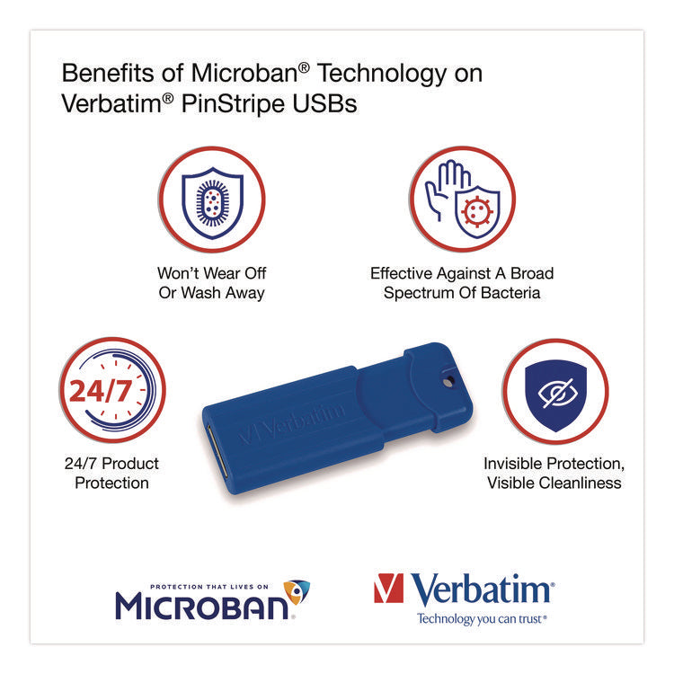 PinStripe USB 3.0 Flash Drive, 16 GB, Assorted Colors, 5/Pack