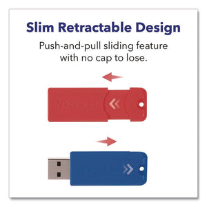 Features a retractable connector with a push-and-pull sliding feature to protect the USB connector when not in use, eliminating the need for a cap. It features a lightweight, pinstriped design. The PinStripe drive makes transporting and sharing files simple.