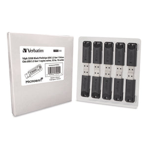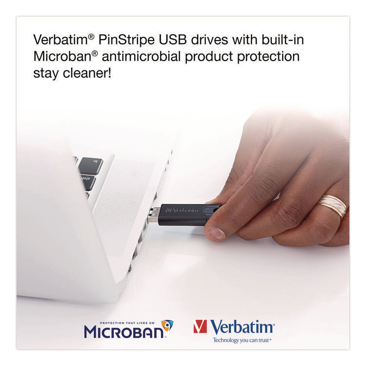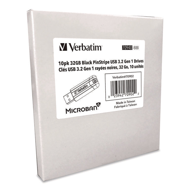 Pinstripe USB 3.2 Flash Drive, 32 GB, Black 10/Pack