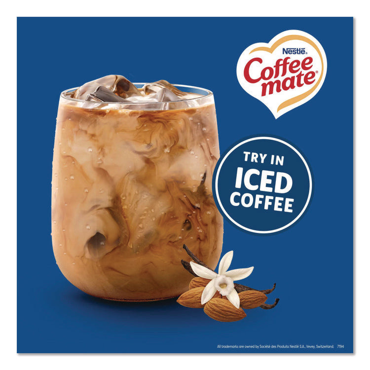 Stir up the perfect cup with Coffee mate, America's #1 creamer brand. Nestle Coffee mate Almond Milk flavored liquid creamer singles are a plant-based way to add rich, smooth nutty flavor and a hint of vanilla natural flavor to your cup of coffee. They are shelf stable with no refrigeration needed. Coffee mate Almond Milk vanilla flavored liquid creamer singles retain their delicious flavor at room temperature for up to nine months unopened. Find your perfect match with NESCAFE Coffee and Coffee mate Almond Milk flavored liquid creamer singles. All Coffee mate foodservice single serve creamers are cholesterol-free, gluten free and kosher dairy. See the full Coffee mate ingredients statement for Coffee mate creamer ingredients. Coffee mate has your coffee creamer needs covered. Delight your employees, customers and guests by offering Coffee mate liquid creamer in your workplace, breakroom or kitchen.