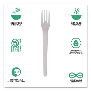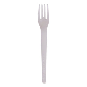 Plantware Compostable Cutlery, Fork, Plastic, Pearl White, 50/Pack, 20 Packs/Carton