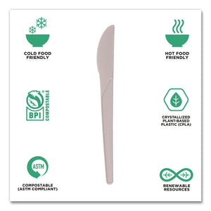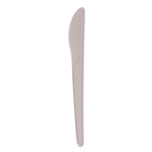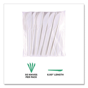Plantware Compostable Cutlery, Knife, Plastic, Pearl White, 50/Pack, 20 Packs/Carton