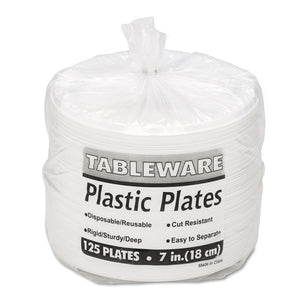 Plastic Dinnerware, Plates, 7" Dia, White, 125/pack