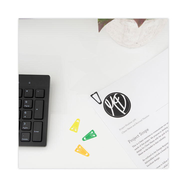 Plastic Paper Clips, Medium, Smooth, Assorted Colors, 500/Box
