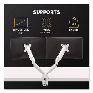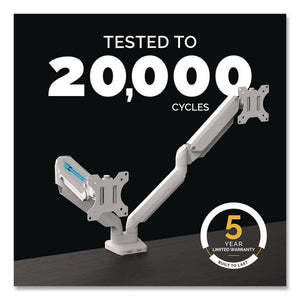 Platinum Series Dual Monitor Arm, For 40" Monitors, 360 deg Rotation, 45 deg Tilt, 180 deg Pan, White, Supports 17.6 lb