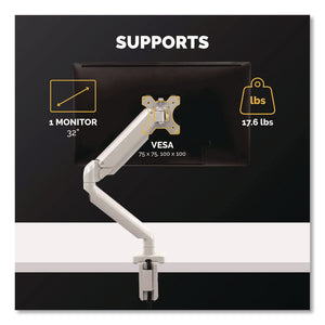 Elevate your workspace with the Fellowes Platinum Series Single Monitor Arm, designed to reduce neck and eye strain while maximizing desk space. The Platinum Series ergonomic monitor arm supports up to 40" and 17.6 lbs, making it ideal for home, office or gaming setups. Featuring fully independent arms with gas spring technology, the Platinum Single Monitor Arm makes adjustments effortless and enables flexible viewing angles with 360° rotation and +/-45° screen tilt. The quick-fit VESA plate ensures an easy setup, attaching securely to desks via grommet or clamp. Featuring two integrated USB ports at the base, the Platinum Series allows you to keep your devices powered while maintaining a clutter-free workspace thanks to the innovative cable management system. Combining quality, durability, and ease of use, the Platinum Single monitor arm provides exceptional value and flexibility for any workstation.