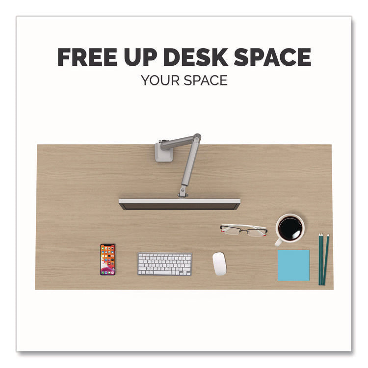 - Fully independent adjustable arms with gas spring technology offer 19.75" reach for increased workspace flexibility and ergonomic comfort.