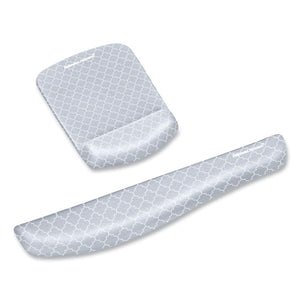 Keep your wrist aligned and express your style with this modern mouse pad with wrist support. The Fellowes® PlushTouch™ ergonomic 9549701 mouse pad with wrist rest in gray lattice uses innovative FoamFusion™ technology to provide superior comfort and softness to help in relieving wrist pressure. MICROBAN® antimicrobial product protection keeps your product cleaner and soft breathable material withstands daily wear and tear.