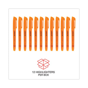 Pocket Highlighters, Fluorescent Orange Ink, Chisel Tip, Orange Barrel, Dozen