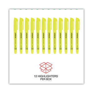 Pocket Highlighters, Fluorescent Yellow Ink, Chisel Tip, Yellow Barrel, Dozen