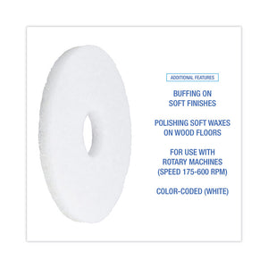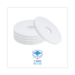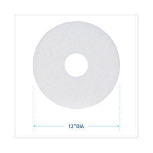 Polishing Floor Pads, 12" Diameter, White, 5/carton