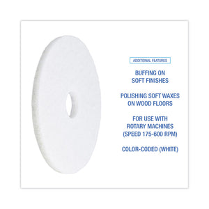 Polishing Floor Pads, 16" Diameter, White, 5/carton