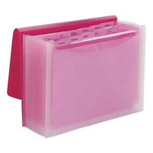 Poly Expanding Folders, 12 Sections, Cord/Hook Closure, 1/6-Cut Tabs, Letter Size, Pink/Clear