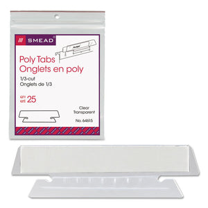 Customize your hanging folders with clear polypropylene tabs. Sturdy, smudge proof and virtually indestructible, they can be installed in several positions on either letter or legal size folders. Angled for easy reading. Durable poly material. White inserts, in strips, included. Contains 25 tabs in poly bag. Acid free and PVC free.