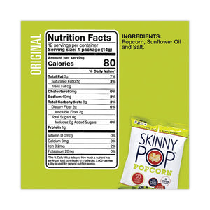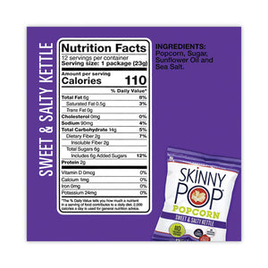 Enjoy the pure popped perfection of SkinnyPop's popcorn variety pack. They are made with 100% premium popcorn, pure sunflower oil and a touch of salt. Pack in school or work lunches, grab for a snack on the go, or just relax with the delicious crunch of a snack you won't feel guilty about eating. SkinnyPop also contains no GMO's, preservatives or artificial ingredients, so you can satisfy your late-night salty cravings guilt-free.