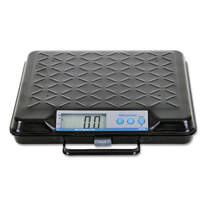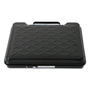 Portable bench scale which is designed for greater accuracy with attached handle. Weight hold key locks weight reading when a larger package blocks the display. Internal backlit display with four 1" high LCD digits for easy visibility. Discreet keyboard technology. Electro-mechanic design. 22-gauge steel base. Auto-zero tracking and manual zero return. 250-lb capacity. Programmable auto-shut-down.