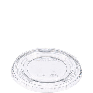 Top SOLO soufflés portion containers with these crystal clear lids and taking food on the go is a breeze. Safely transport sauces, dressings, and even small sides while avoiding disappointing messes. Snacks and treats are completely protected and irresistibly presented to boot! The uses for these secure-fitting lids are endless. Whether you're prepping lunches at the deli counter or delivering restaurant carryout, Dart offers a straightforward solution. A variety of compatible containers are sold separately. This lid fits multiple sizes for operational efficiency.