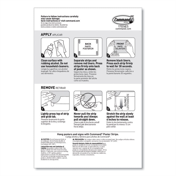 Poster Strips, Removable, Holds Up To 1 Lb Per Pair, Small, 0.63 X 1.75, White, 104/pack