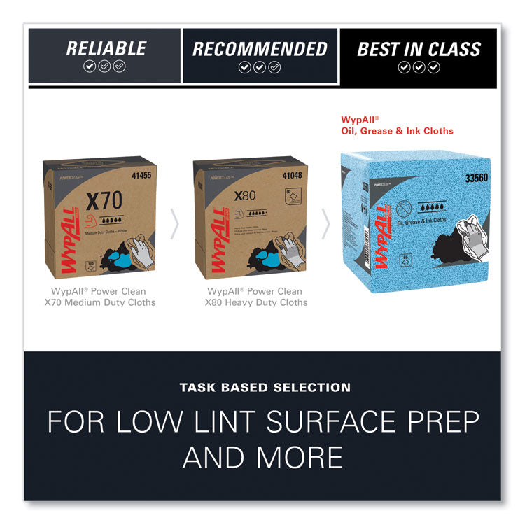 Power Clean Oil, Grease and Ink Cloths, 1/4 Fold, 12.5 x 12, Blue, 66/Box, 8 Boxes/Carton