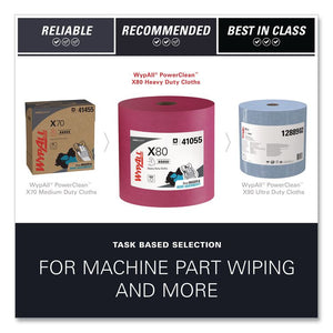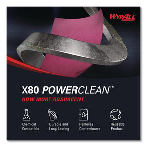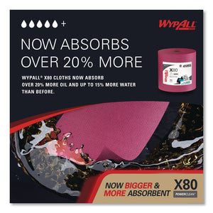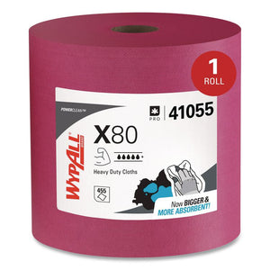 Power Clean X80 Heavy Duty Cloths, Jumbo Roll, 12.4 x 12.2, Red, 475 Wipers/Roll
