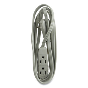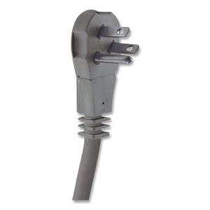 Enhance cafeterias and conference rooms with extra plugs by using this indoor cord. The three grounded outlets let you power multiple devices simultaneously, and the right-angle plug keeps the cord flush along the wall. The three-prong design helps reduce the need for adapters. Flat cord design secures easily to a wall with clips or tape.