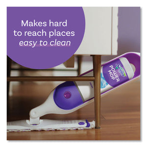 Mop smarter with the Swiffer PowerMop, an all-in-one mopping system that gives you a mop and bucket clean in half the time. The multi-surface mopping pads have 300+ scrubbing strips that reach deep into grooves and grout to remove sticky spills and daily dirt and grime. The fresh scent of PowerMop solution will fill your home with freshness for hours.