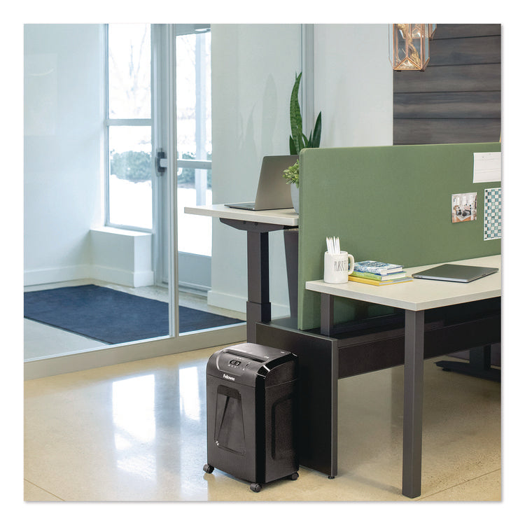 Shreds 12 sheets per pass into cross-cut particles (Security Level P-4) for enhanced security on highly confidential documents to help keep your information safe. Provides powerful deskside shredding and, in addition to paper, can also shred staples, paper clips and unopened junk mail. Shreds continuously for up to 10 minutes before a cool down period is needed allowing you to complete small shredding jobs in one sitting. Patented Safety Lock disables shredder for added safety protection. Five-gallon pull-out bin keeps shreds contained and workspaces clean.