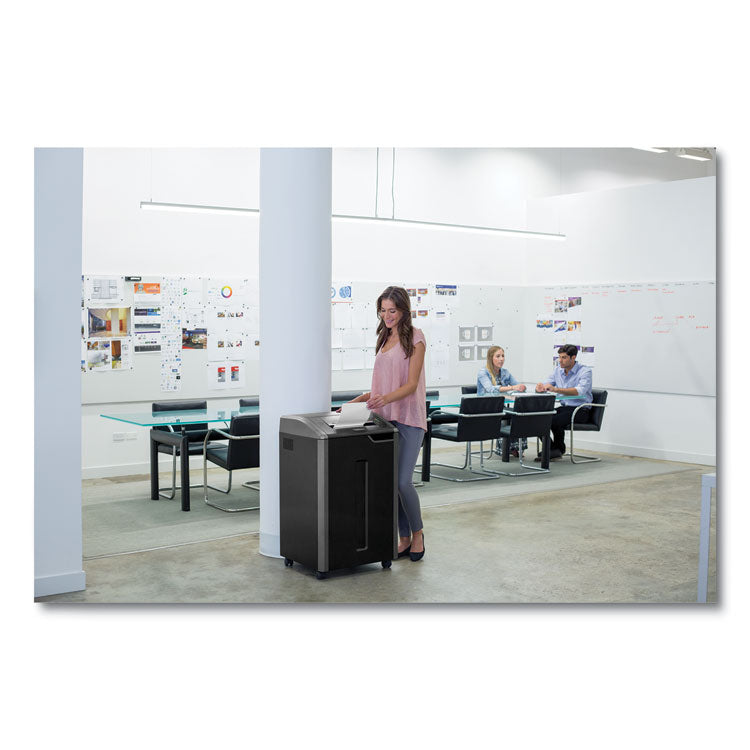 100% Jam Proof System eliminates paper jams and powers through tough jobs. SilentShred™ offers ultra-quiet performance for shared workspaces. SafeSense® Technology stops shredding when hands touch the paper opening. Energy Savings System provides optimal energy efficiency 100% of the time-in use and out of use. Wide 9-1/2" paper entry plus continuous duty motor for non-stop shredding. Shreds 22 sheets per pass into 5/32" x 1-1/2" cross-cut particles (Security Level P-4). 22-gallon bin. 6-10 users.