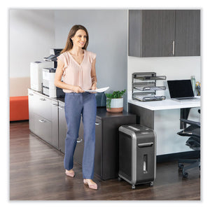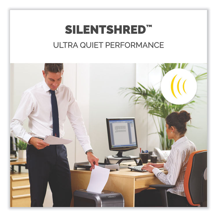 Provides powerful professional shredding with jam protection. The 100% Jam Proof System eliminates paper jams and powers through tough jobs. SafeSense® Technology stops shredding when hands touch the paper opening. SilentShred offers ultra-quiet performance for shared workspaces. Energy Savings System provides optimal energy efficiency 100% of the time-in use and out of use. Shreds 18 sheets per pass into 5/32" x 1 1/2" cross-cut particles (Security Level P-4), also shreds staples, credit cards, paper clips, CDs/DVDs and junk mail. Includes 9-gallon pull-out bin with LED bin-full indicator. Maximum run time: 30 on/40 off. For one to three users.