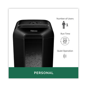 The Powershred® LX85 Cross-Cut Shredder is a reliable desk side shredder for personal use. It's elevated and sophisticated design brings distinction to any work or home office environment. The patented SafeSense Technology feature automatically stops the machine from shredding if hands or paws touch the paper entry, providing superior protection and peace of mind. The LX85 shreds 12 sheets per pass into 5 /32" x 1 9/16" cross-cut particles (Security Level P-4) and safely shreds staples, paper clips, plastic credit cards, and unopened junk mail. Its convenient, 5 gallon pull-out waste bin holds over 250 shredded sheets. Designed for individual use, the LX85 shreds for up to 20 minutes before a 30 minute cool down period is needed.