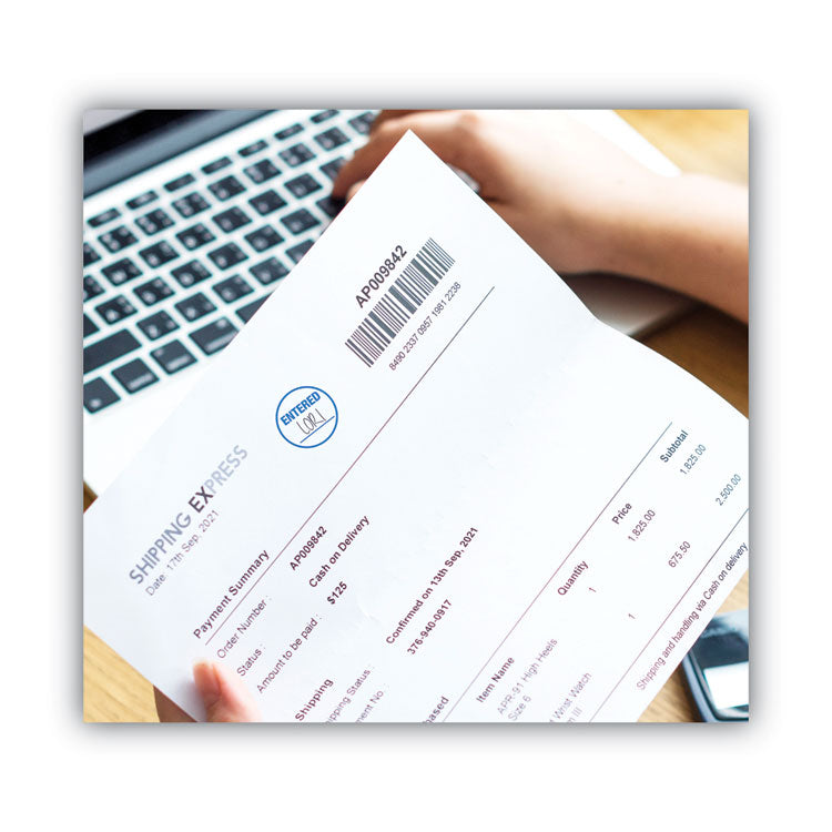 Pre-Inked Round Stamp, Entered, 0.63" Dia, Blue